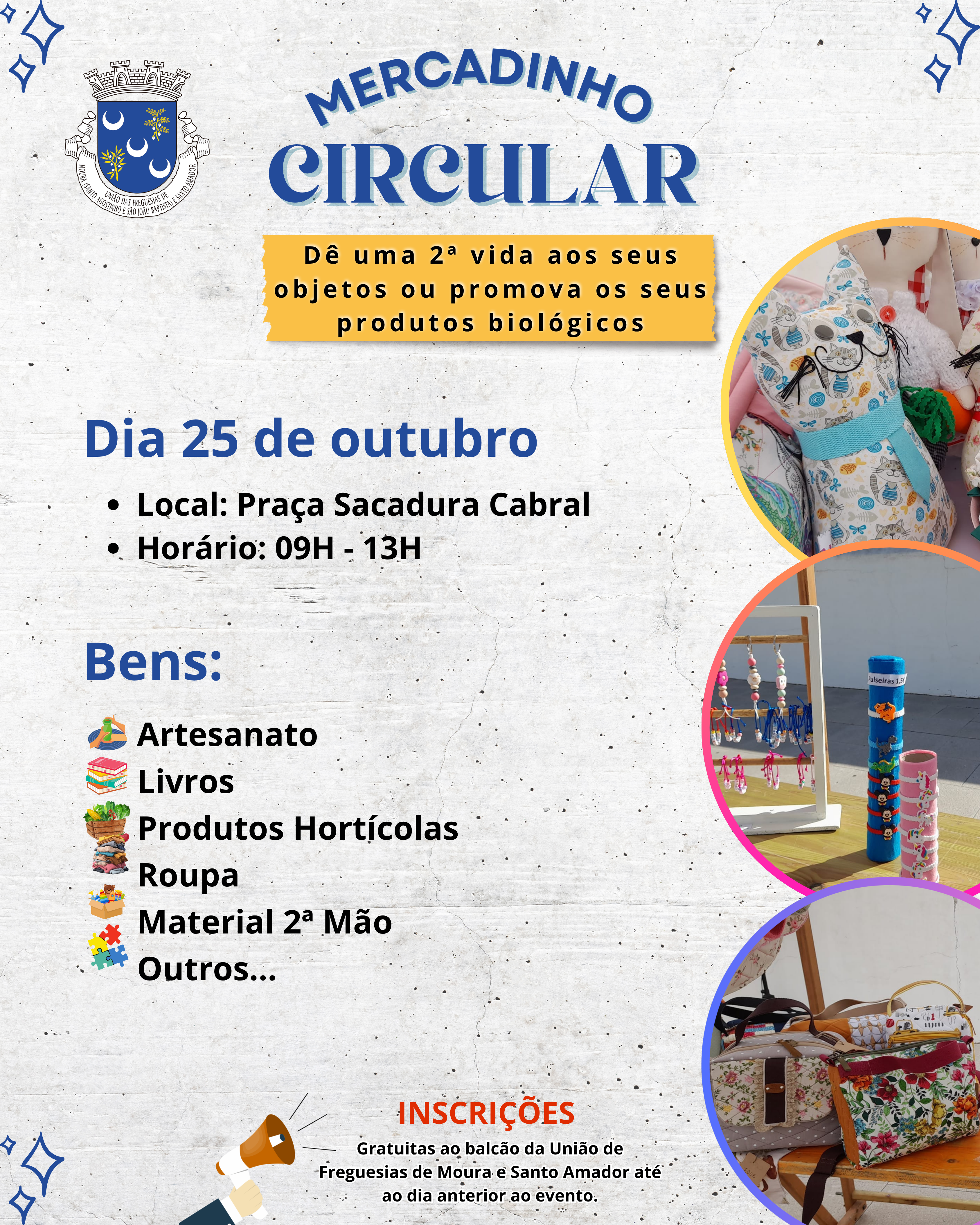 📝 Inscrições gratuitas no balcão da União de Freguesias de Moura e Santo Amador até ao dia anterior ao evento.